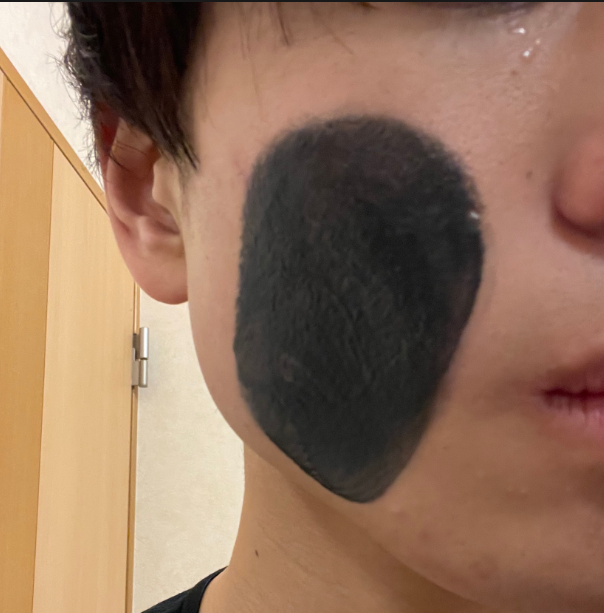 少し写真だとわかりづらいですが、オイル状にしたクレンジングバームを顔につけ、ぬるま湯を足すことによって色が少しづつ濁っています。