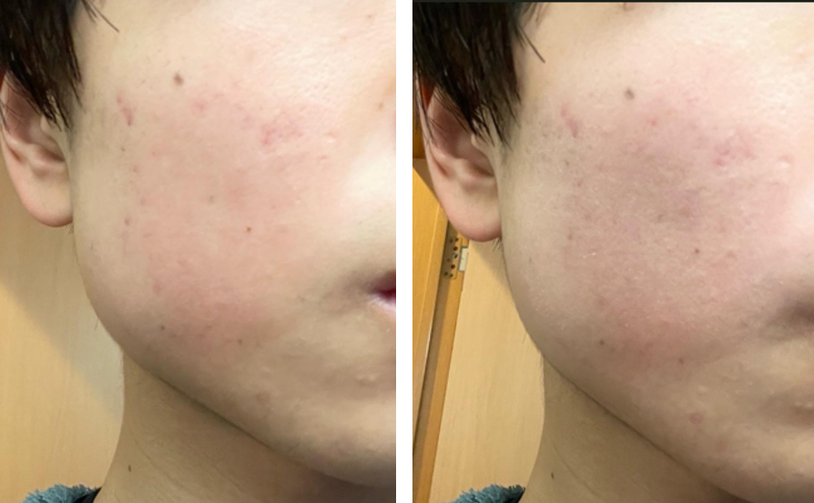 写真でみるとあまりカバーされていないようにみえてしまうかもしれませんが、少し距離をとったり鏡などでみたりすると、ニキビ跡など、気にならなくなる程度までカバーできています。